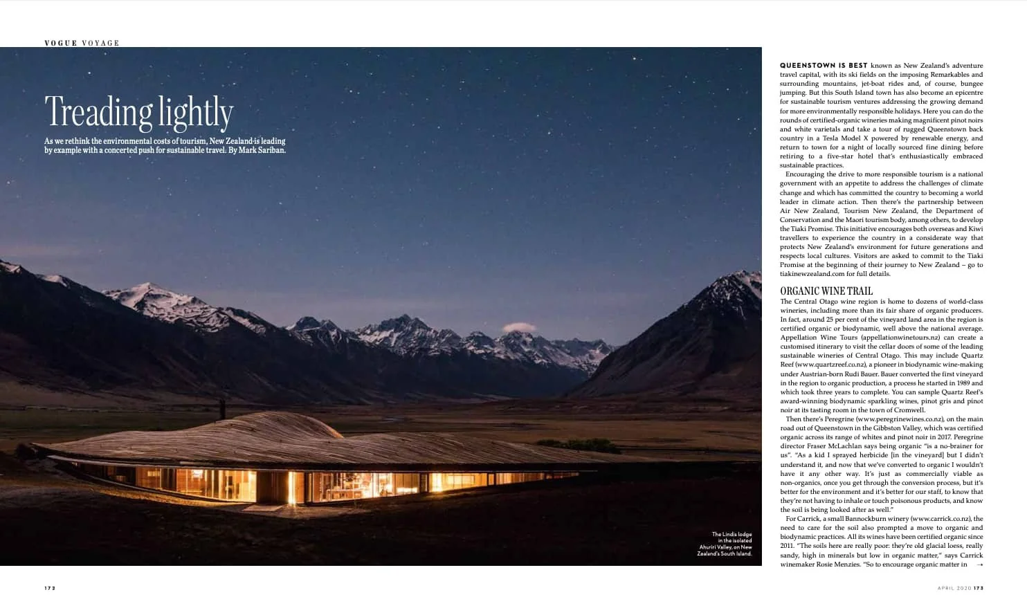 Working with Tourism New Zealand and Air New Zealand, I explored how the country is leading the way in sustainable travel. I then repurposed the print feature as a photo gallery for Vogue.com.au.